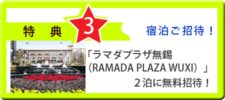 ラマダプラザ無錫(RAMADA PLAZA WUXI)/住所:中国江蘇省無錫市恵山区呉韻路589号 TEL:+86-510-88083888 |